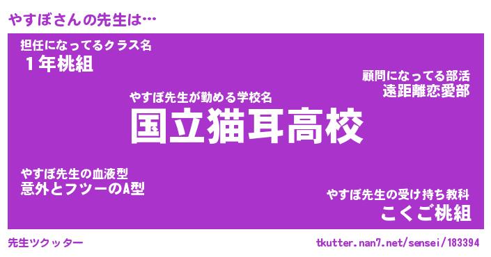 | ファンタジー風あだ名 | 『ヤスフェル』『エターナルヤスボー』 |