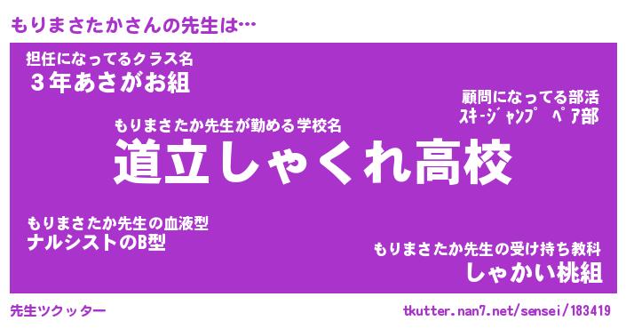 | 肩書あだ名 | 『もりまさたか御曹司』 |