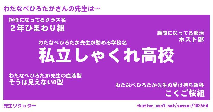 | 肩書あだ名 | 『わたなべひろたか御曹司』 |