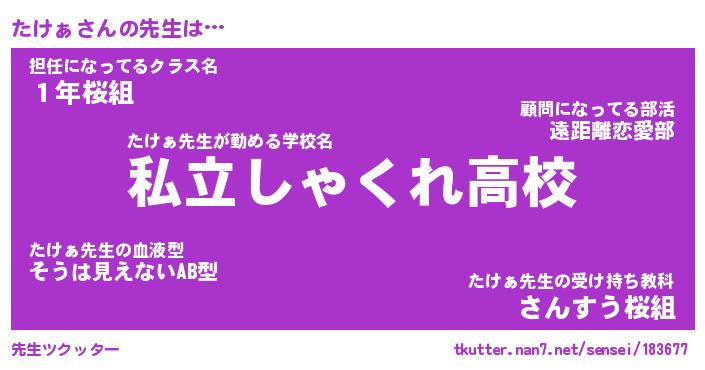 | ファンタジー風あだ名 | 『タケフェル』『エターナルタケァー』 |