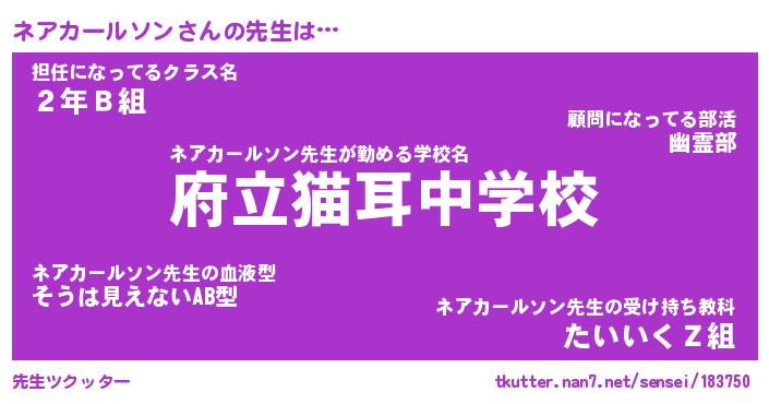 | 恥ずかしいあだ名 | 『プリティーネアカールソン』『ネアちん』 |