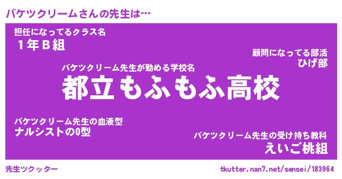 | ヘコむあだ名 | 『バケにゅー』『豆乳』『バケっちょ』 |