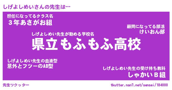 | ピコ太郎風あだ名 | 『シコ二郎』『ピシ太郎』『シゲ次郎』 |