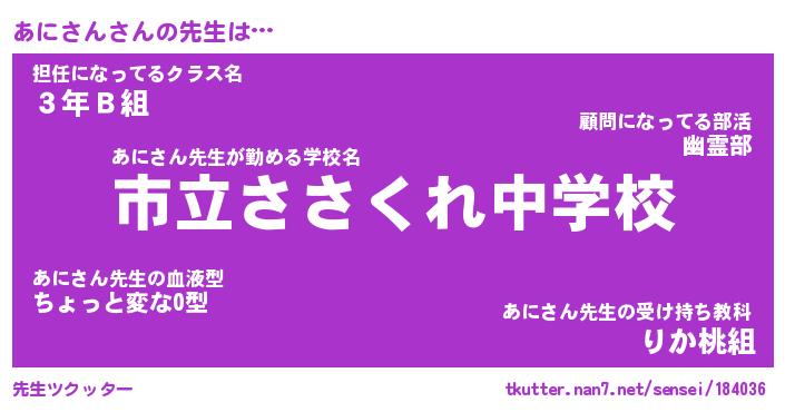 | ポケモン風あだ名 | 『アニチュウ』『アニサダネ』 |