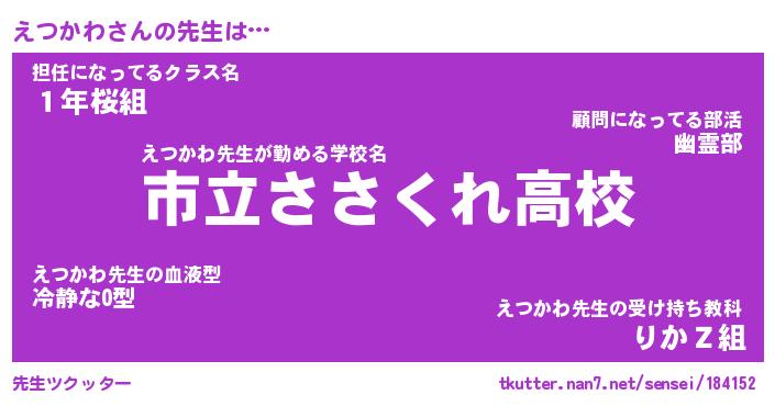| 意味不明あだ名 | 『ペロリンえつかわ』『永久保存えつかわ』 |