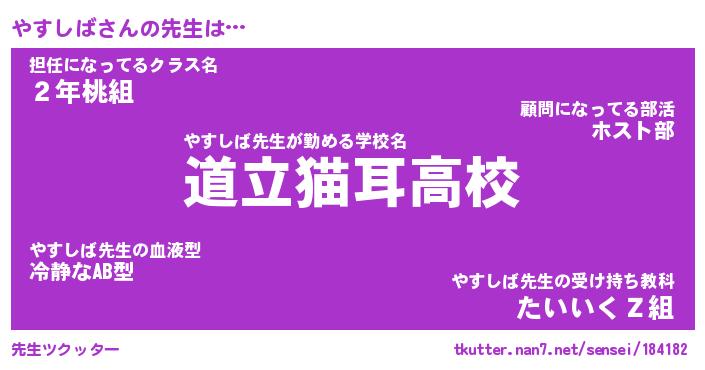 | 意味不明あだ名 | 『ペロリンやすしば』『永久保存やすしば』 |