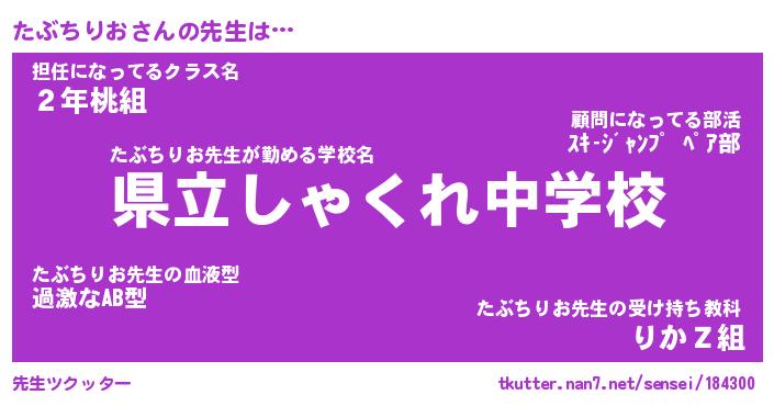 | 欧米人風あだ名 | 『マイケルたぶちりお』 |
