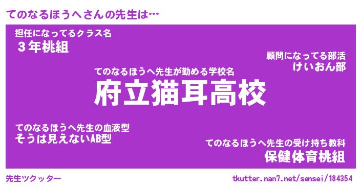 | ツイッター | てのなるほうへさんのツイッターID『namakemono_man』 |