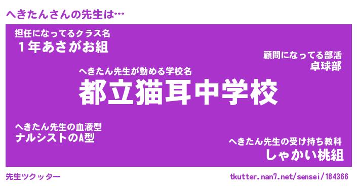 | 意味不明あだ名 | 『ペロリンへきたん』『永久保存へきたん』 |