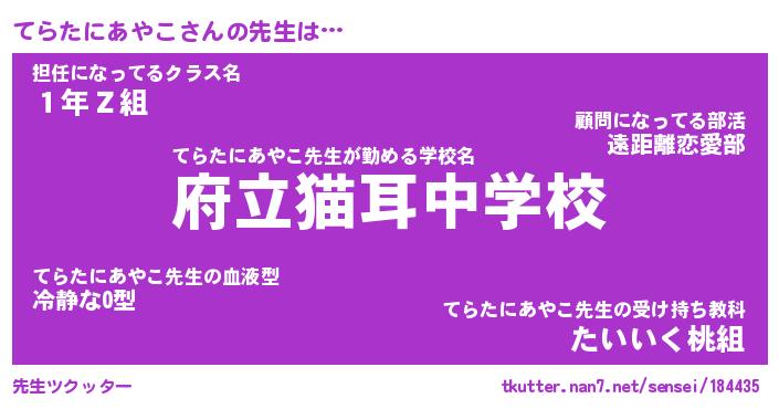 | ヘコむあだ名 | 『てらにー』『つくし』『てらぷりん』 |
