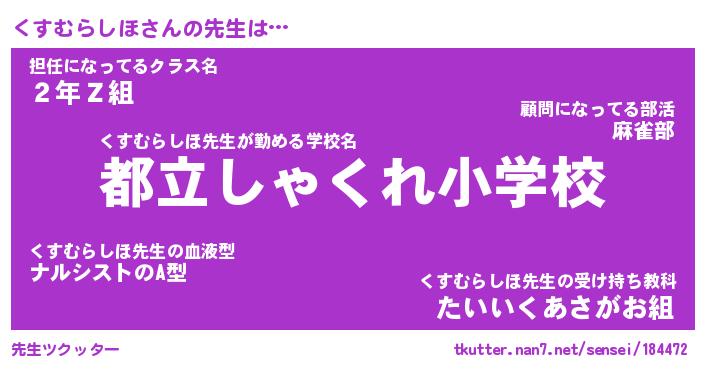 | ヒーロー風カッコイイあだ名 | 『スーパークスムラシホ』『魔戒騎士クス』 |