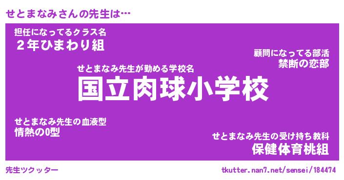 | ポケモン風あだ名 | 『セトチュウ』『セトマダネ』 |