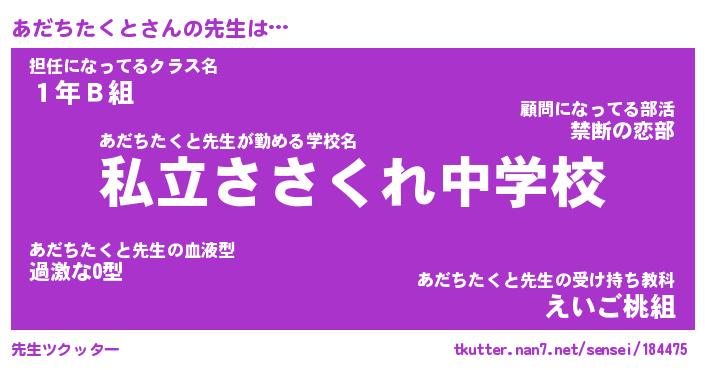 | ポケモン風あだ名 | 『アダチュウ』『アダチダネ』 |