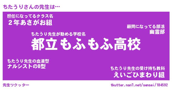 | 意味不明あだ名 | 『ペロリンちたうり』『永久保存ちたうり』 |