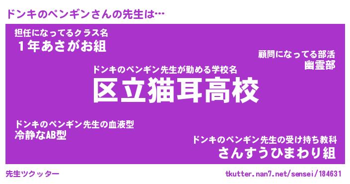 | 意味不明あだ名 | 『ペロリンドンキのペンギン』 |