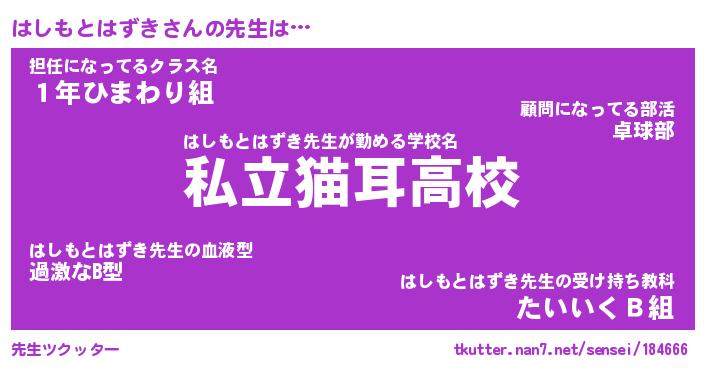 | ヘコむあだ名 | 『はしにー』『レバニラ』『はしっ子』 |