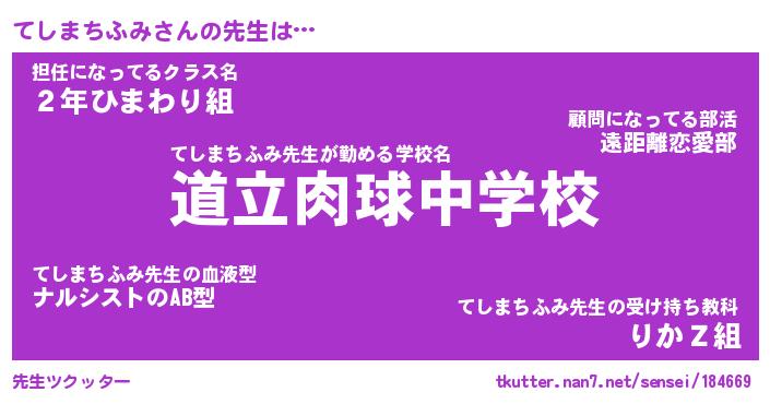 | ヘコむあだ名 | 『てしふぇ~』『なまこ酢』『てしを』 |
