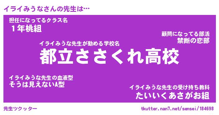 | 意味不明あだ名 | 『ペロリンイライみうな』 |