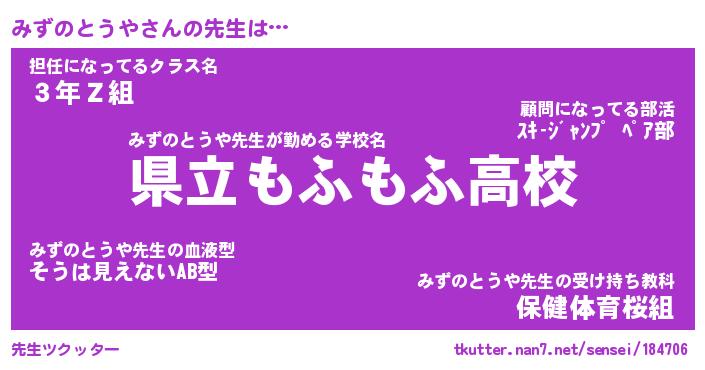 | ヒーロー風カッコイイあだ名 | 『スーパーミズノトウヤ』『炎刃騎士ミズ』 |