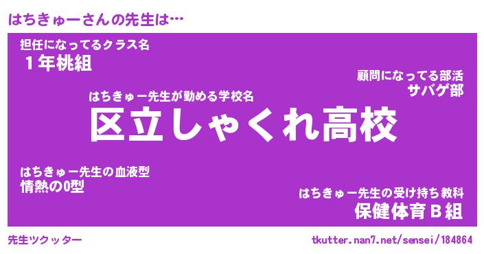 | ファンタジー風あだ名 | 『ハチフェル』『エターナルハチキューー』 |