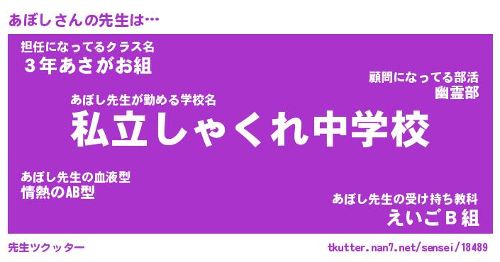 | ヒーロー風カッコイイあだ名 | 『スーパーアボシ』『ウルトラあぼしマン』 |