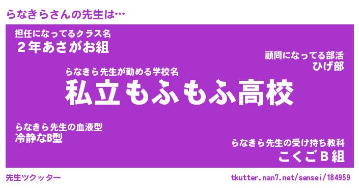 | 意味不明あだ名 | 『ペロリンらなきら』『永久保存らなきら』 |