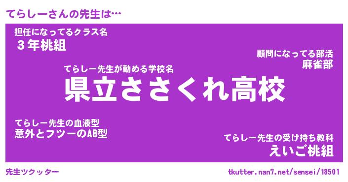 | 意味不明あだ名 | 『ペロリンてらしー』『永久保存てらしー』 |