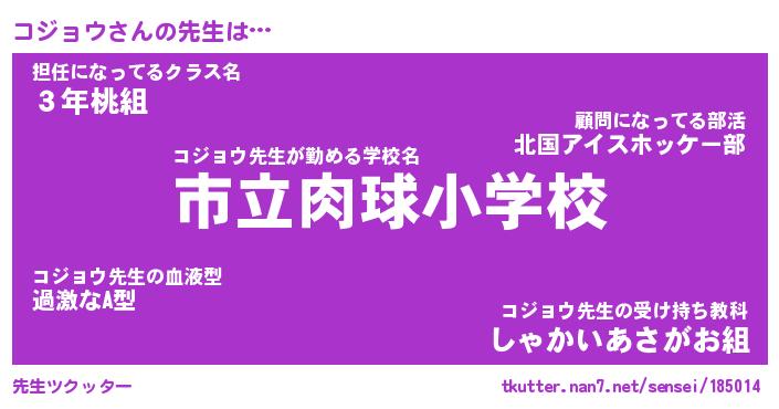 | 意味不明あだ名 | 『ペロリンコジョウ』『永久保存コジョウ』 |