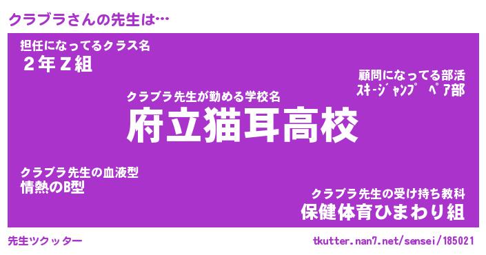 | 意味不明あだ名 | 『ペロリンクラブラ』『永久保存クラブラ』 |