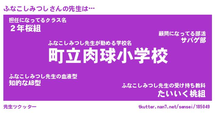 | ヘコむあだ名 | 『ふなふぇ~』『牛乳』『ふなぷりん』 |