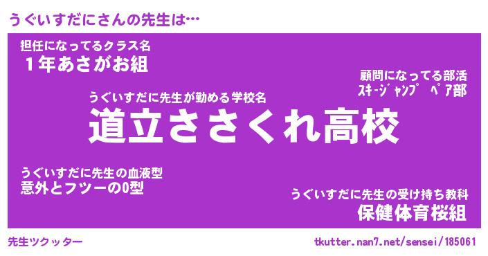 | ヘコむあだ名 | 『うぐもー』『牛乳』『うぐっぺ』 |