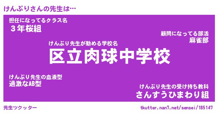 | 意味不明あだ名 | 『ペロリンけんぷり』『永久保存けんぷり』 |
