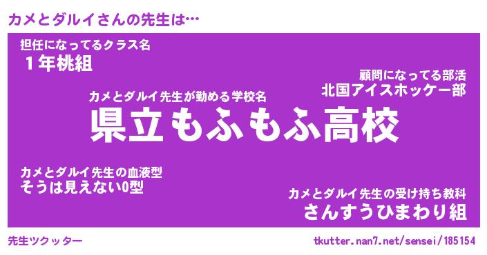 | ヘコむあだ名 | 『カメにゅー』『つくし』『カメお』 |