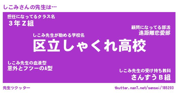 | 意味不明あだ名 | 『ペロリンしこみ』『しこみフォーエバー』 |