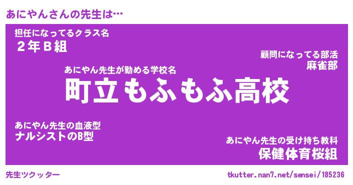 | ポケモン風あだ名 | 『アニチュウ』『アニヤダネ』 |