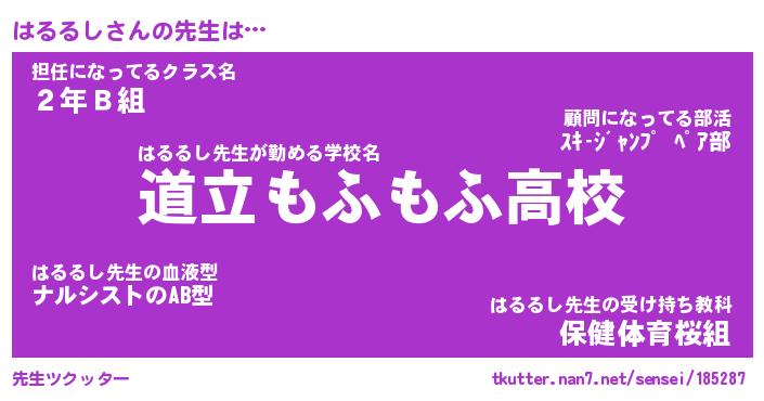 | 意味不明あだ名 | 『ペロリンはるるし』『永久保存はるるし』 |
