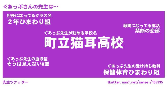 | 意味不明あだ名 | 『ペロリンぐあっぷ』『永久保存ぐあっぷ』 |