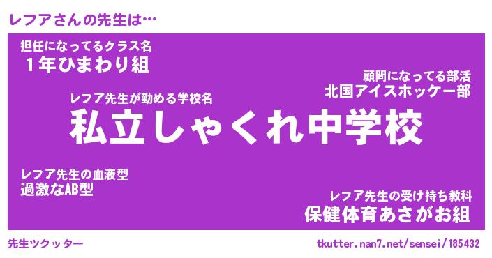 | 欧米人風あだ名 | 『マイケルレフア』『レフアクリステル』 |