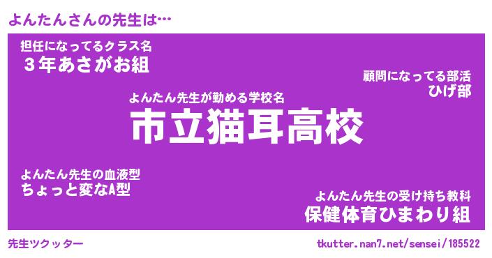 | 意味不明あだ名 | 『ペロリンよんたん』『永久保存よんたん』 |
