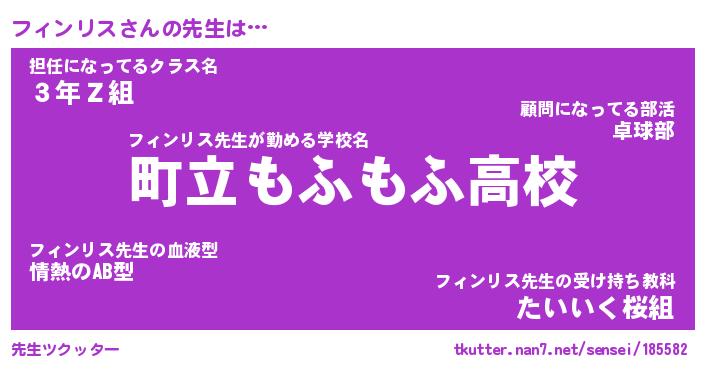 | 肩書あだ名 | 『フィンリス店長』『フィンリス総理大臣』 |