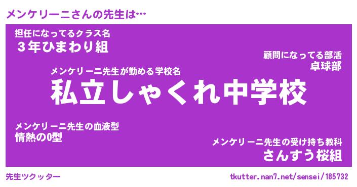 | ポケモン風あだ名 | 『メンチュウ』『メンケダネ』 |