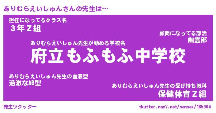 | ツイッター | ありむらえいしゅんさんのツイッターID『namakemono_idle』 |
