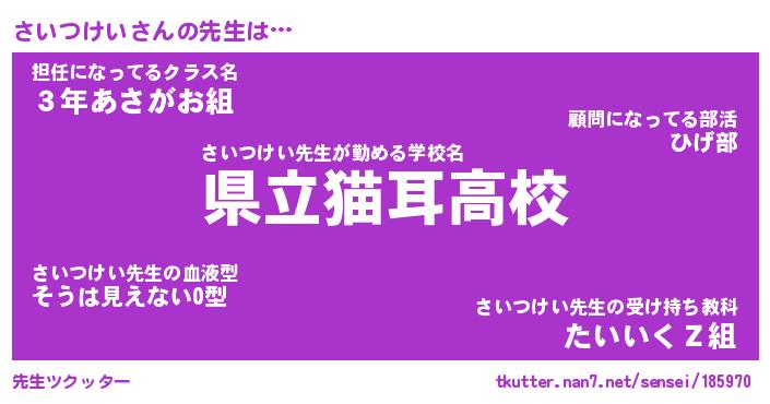 | 男性向けラノベタイトル風あだ名 | 『さいつけいの憂鬱』 |