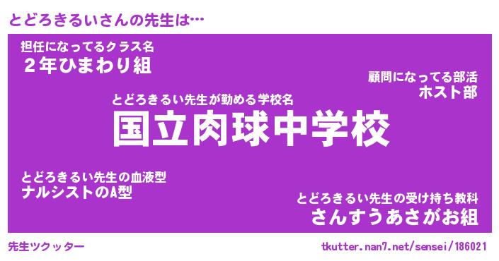 | ヘコむあだ名 | 『とどふぇ~』『牛乳』『とどっぺ』 |