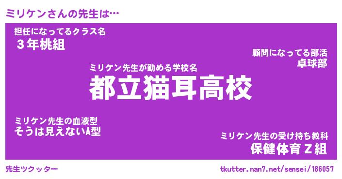 | 意味不明あだ名 | 『ペロリンミリケン』『永久保存ミリケン』 |