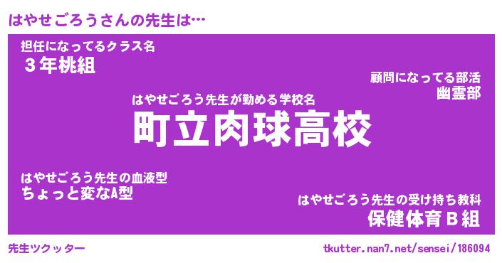 | ヒーロー風カッコイイあだ名 | 『スーパーハヤセゴロウ』『暗黒騎士ハヤ』 |