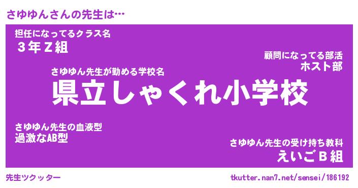 | ヒーロー風カッコイイあだ名 | 『スーパーサユユン』『暗黒騎士サユ』 |