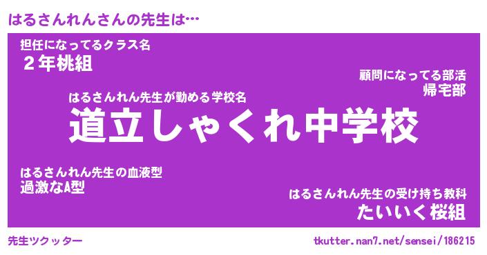 | 伝説のあだ名 | 『不死鳥のスナイパーはるさんれん』 |