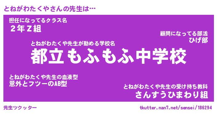 | 胡散臭い通販商品みたいなあだ名 | 『モテモテ間違いなし水晶球…その名も「とねがわたくや」』 |