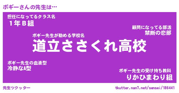 | ヘコむあだ名 | 『ボギもー』『つくし』『ボギを』 |